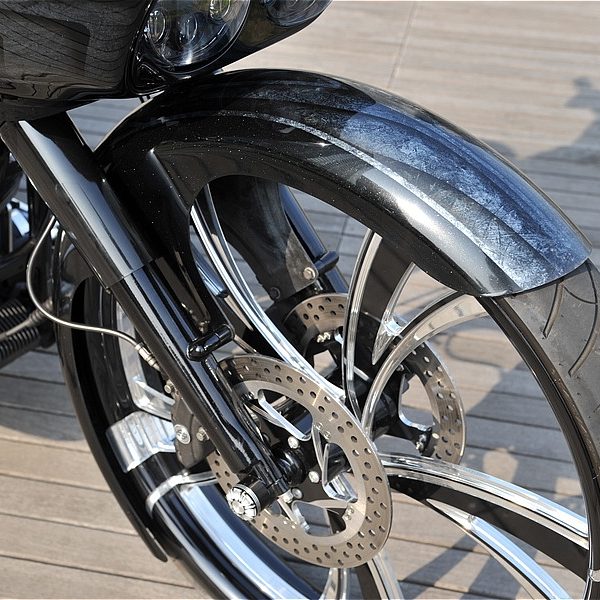 バガースタイルの基本デザインは、フロントホイールを極端に大きな、インチアップするのが1つ。