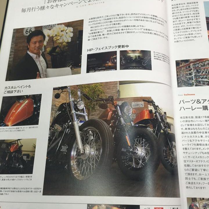 今月発売のハーレー 雑誌プライマリーから掲載を開始されました^_^ バガーカスタムを始めビックホイルやエアサス組付まで幅広いカスタムを承ってます! お気軽にご相談下さい〜!