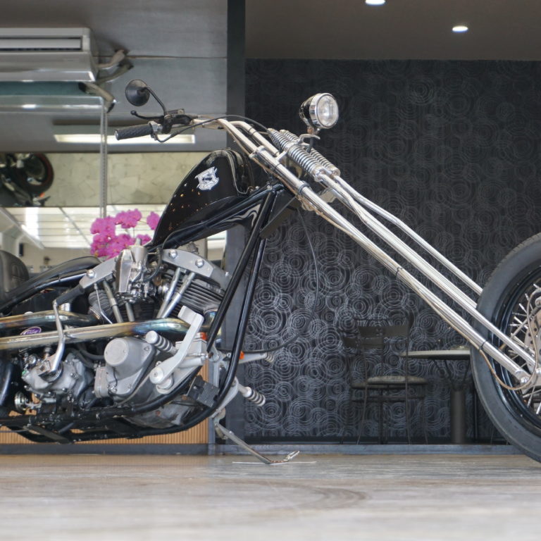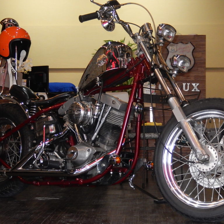 なかなか見れない1台がやってきました^^ 1977年ショベルヘッドのフルカスタムです! ご来店頂いたお客様の自慢の1台の写真を許可を頂き撮らせて頂きました^^ 当店の在庫でないのが残念です。。