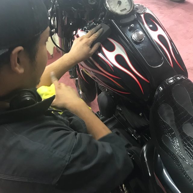 本日は2日間をかけて売約済みのFLHXのガラスコーティング施工を 行いました! ボディ・エンジン・足回り・フレームなど全体の磨き&コーティングです♪ 価格は¥65000-~より承っております!…
