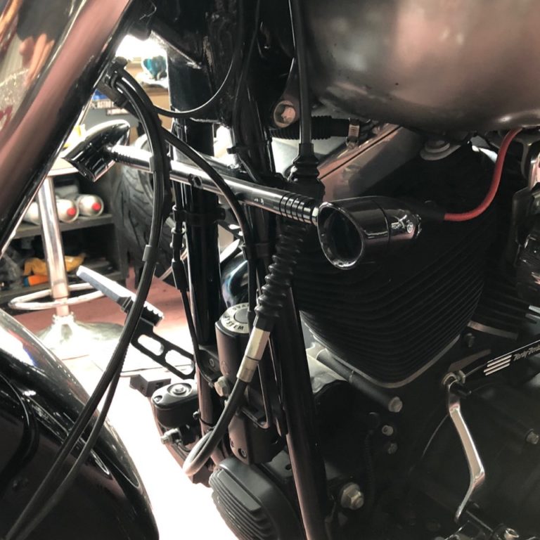 本日も沢山のお問い合わせ・ご成約有難う御座います! 愛知県にお住いまいのお客様のFLHXのカスタム作業風景の写真です! ご依頼頂きましたアレンネス製の14インチ エイプバーアップハンドル クリ…